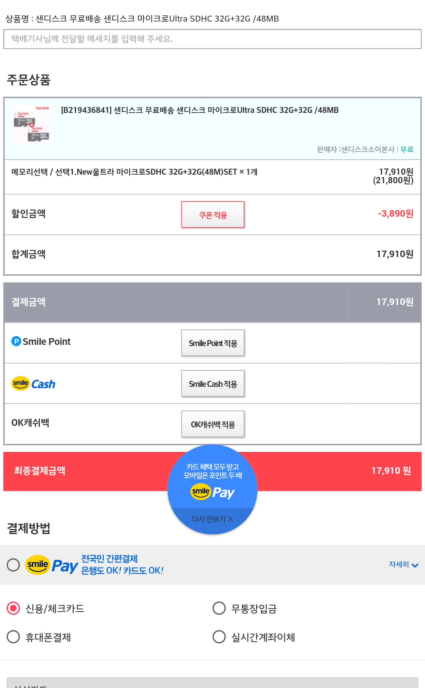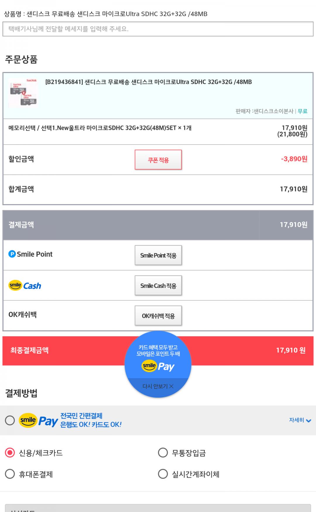 쿠폰게시판에 제가 올린 쿠폰 사용하시면 17,910원 나옵니다