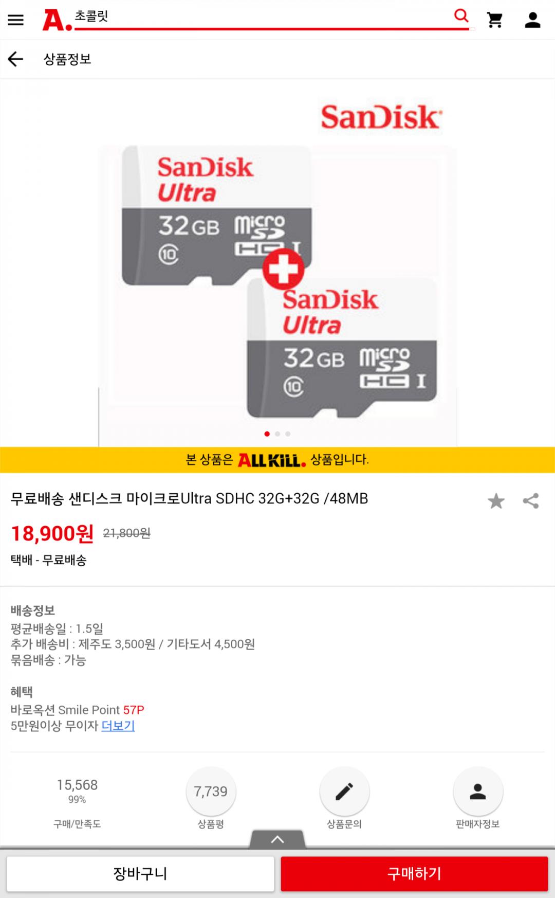 샌디스크 울트라 32기가 모델이 9500원 정도 하니