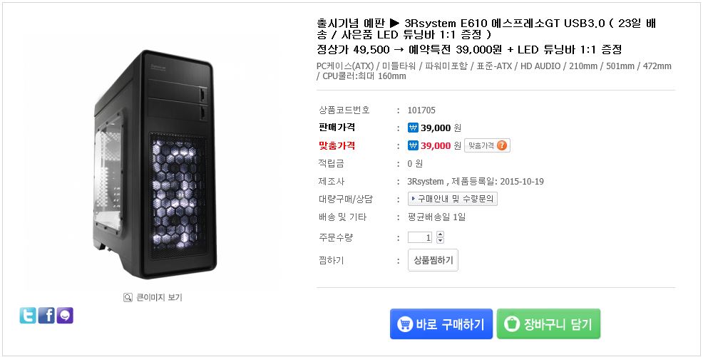 [컴스클럽] 3Rsystem E610 에스프레소GT USB3.0 (사은품 LED 튜닝바) (39,000/2,500)