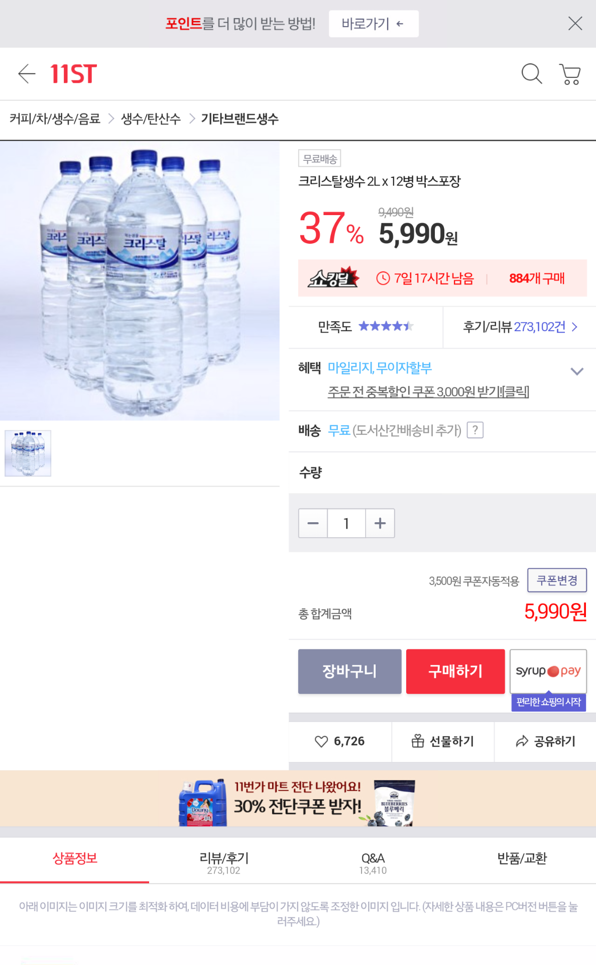 2L 12개에 6천원이면 뭐 그렇게 싼 건 아닙니다만