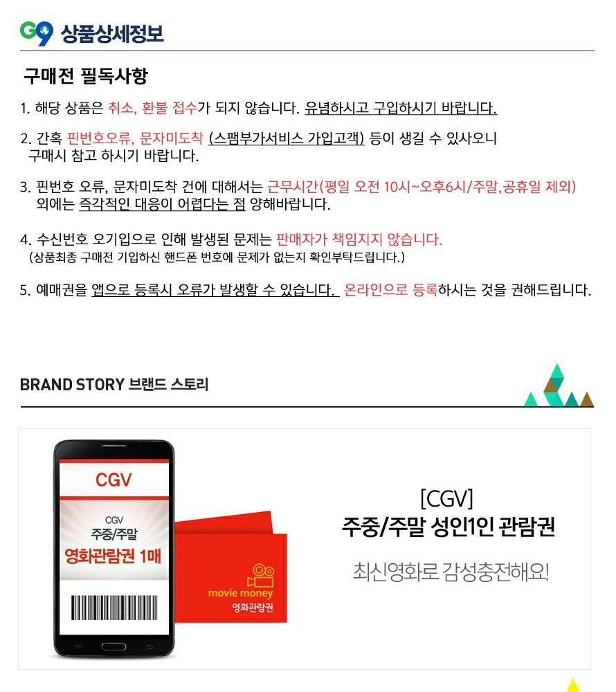 (품절)[G9] CGV 주중/주말 영화관람권 (7,300/무료) > 국내핫딜