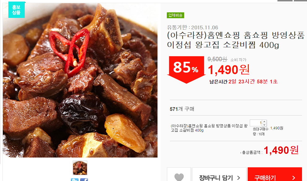 홈엔쇼핑에 방영되었던 이정섭 왕고집 소갈비찜이예요~