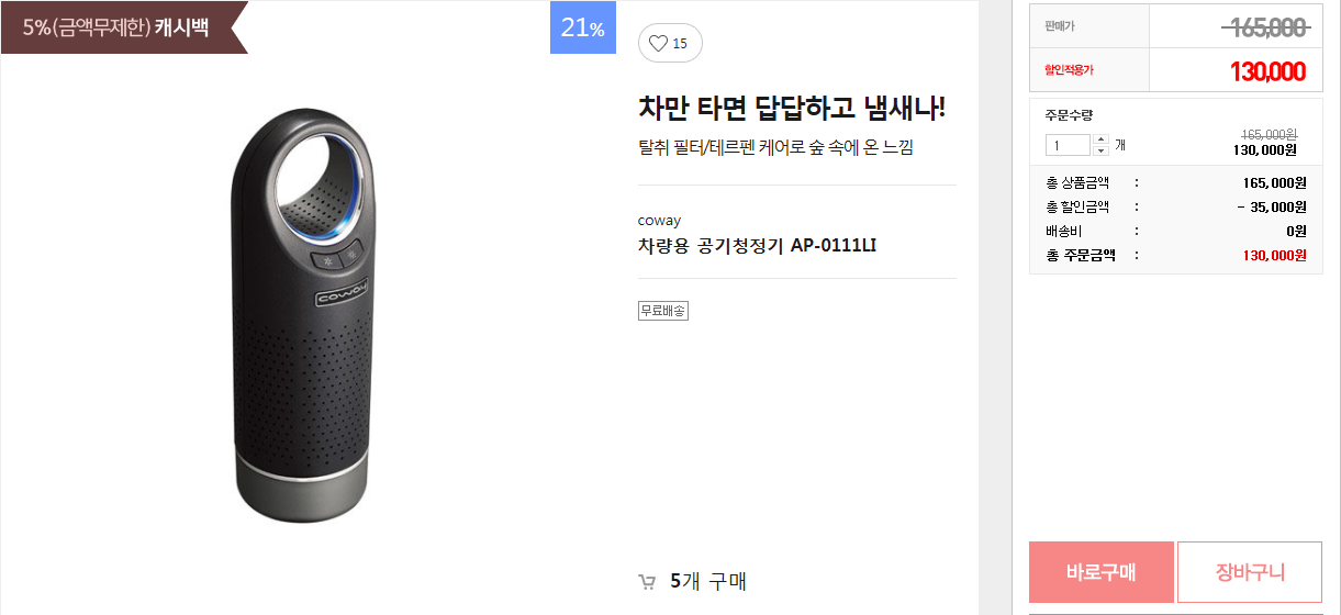 [G9] coway 차량용 공기청정기 AP-0111LI (130,000/무료) > 국내핫딜