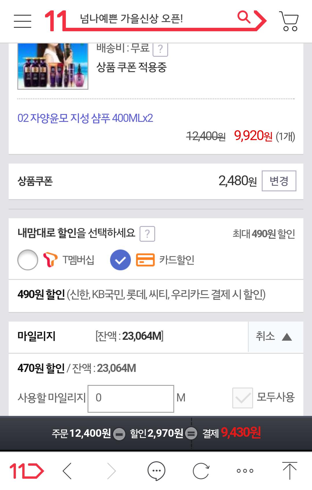 카드할인 대상카드가 없어 아쉽지만 잘 샀습니다. ^^ |