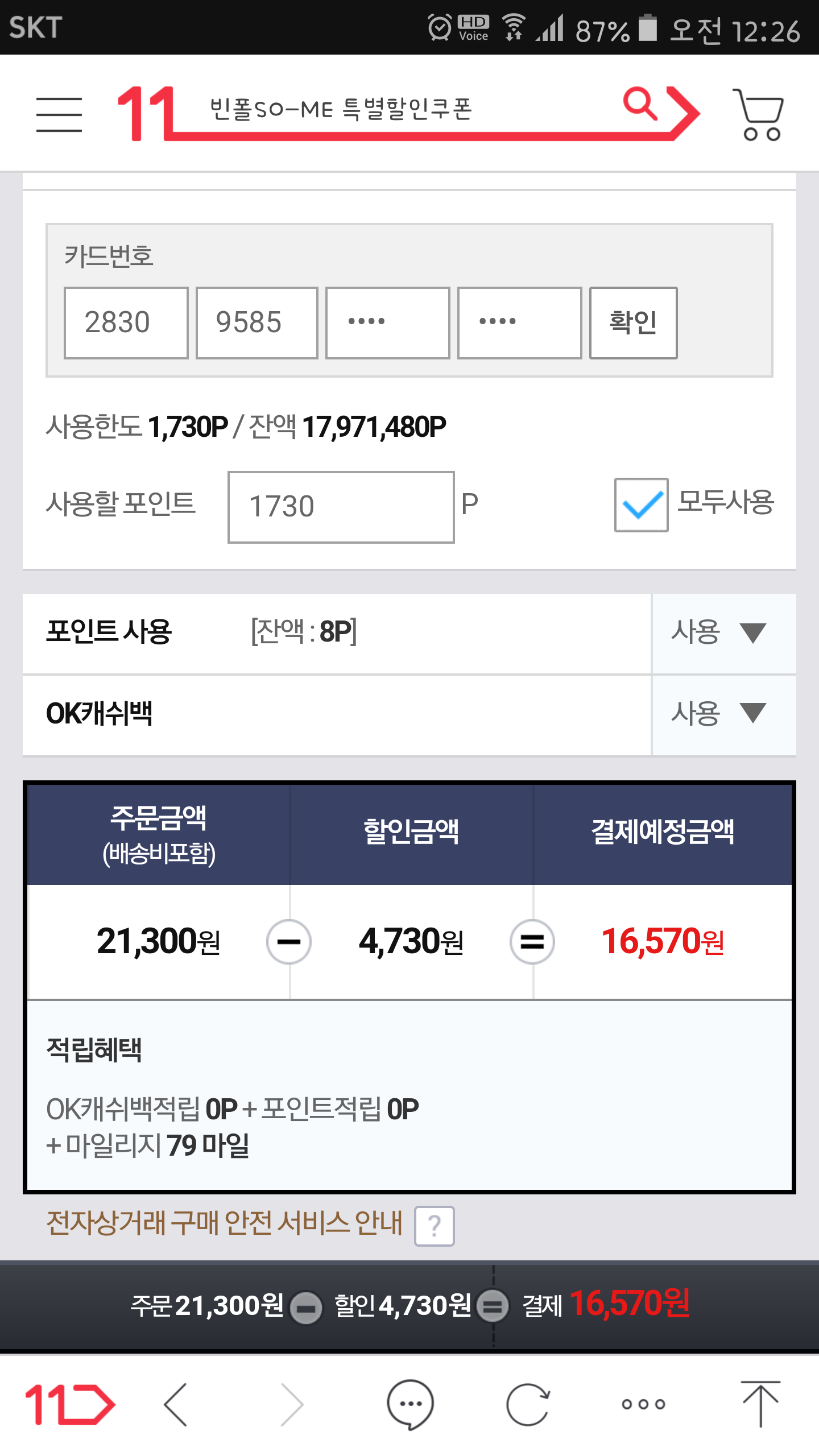 T맴버쉽 VIP라서 점수가 많은거예요ㅋ