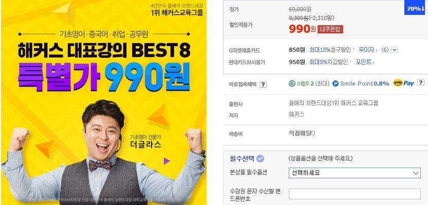 지마켓에서 해커스 대표강의들 할인 중입니다