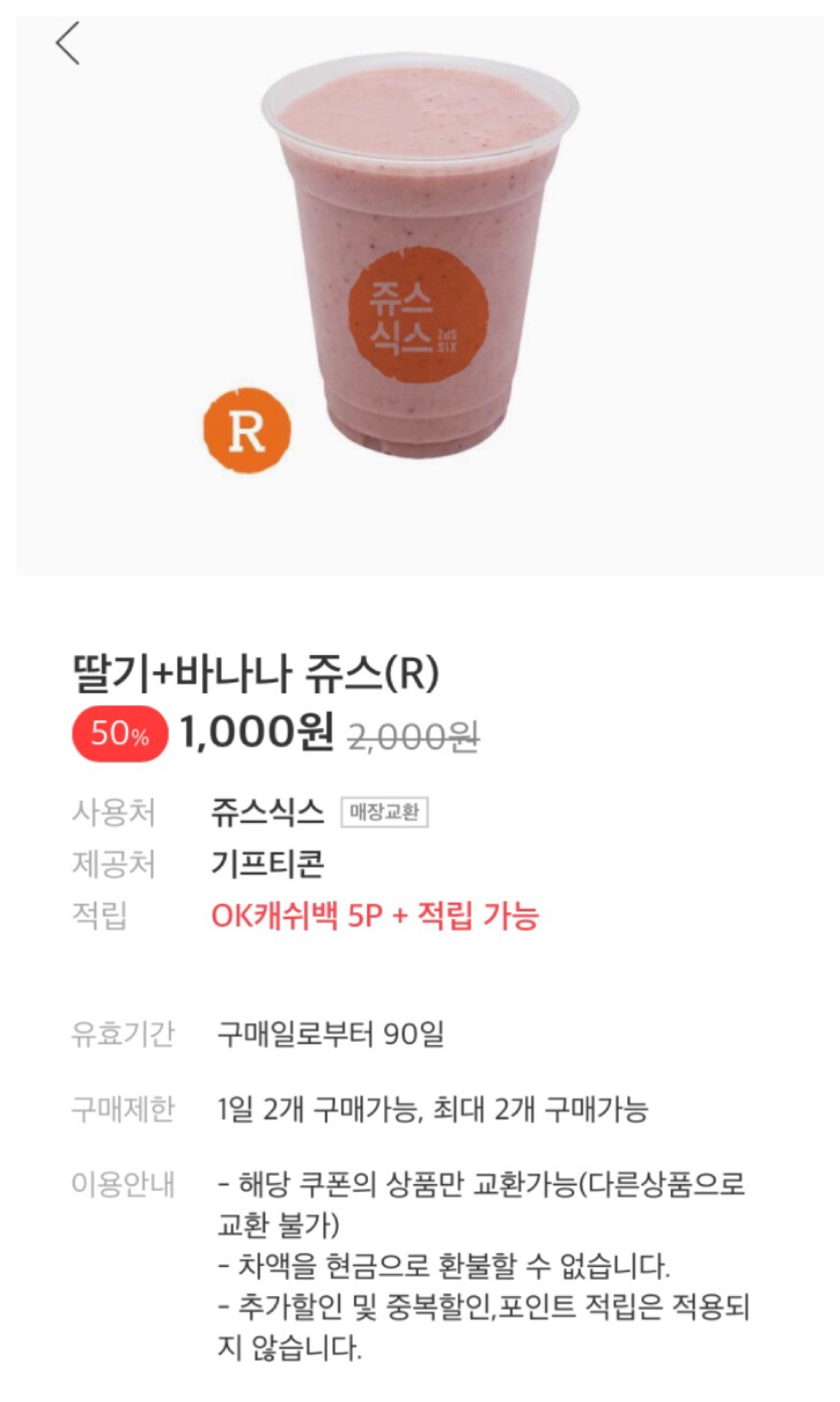 쥬스식스 매장 근처에 있던데 개꿀일세. 구매왈료 |
