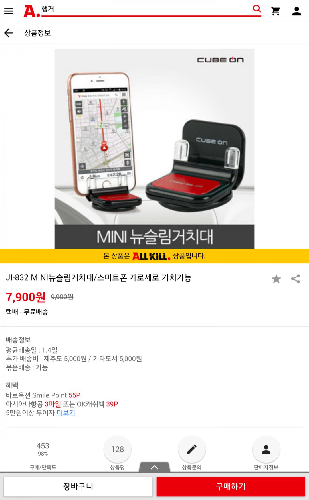 [옥션] MINI 슬림 (차량용)스마트폰 거치대 (7,490/무료) > 국내핫딜