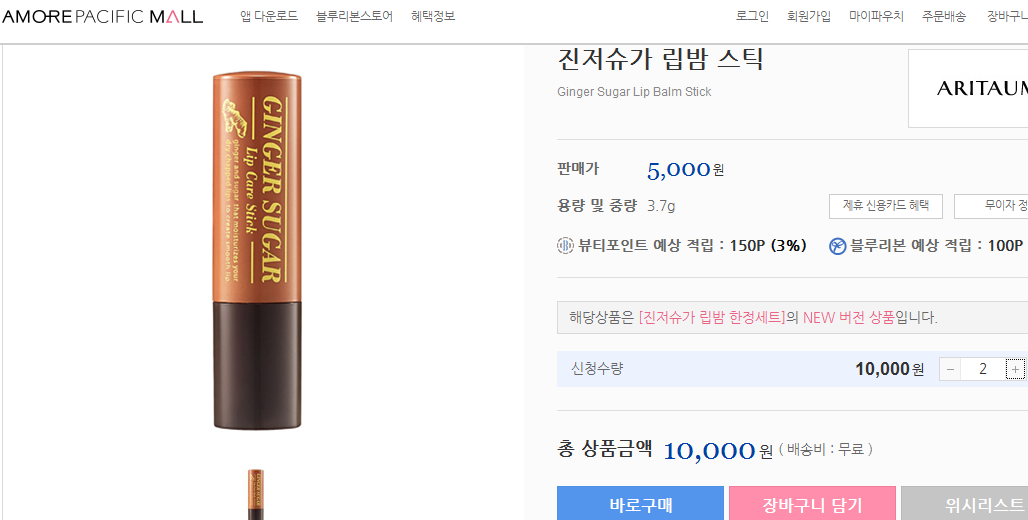 일단 받아두면 사용기한은 3/14일까지네요. 전 아래 진저슈가 립밤 2개 5,000원 무배 구매했네요~