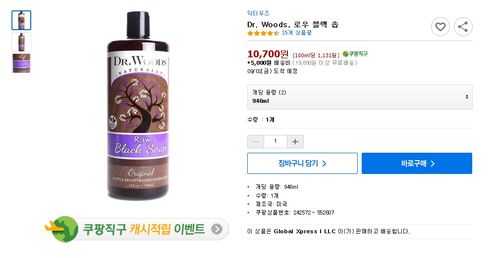 [쿠팡] Dr. Woods, 로우 블랙 솝 (473ml: 6,600 946ml: 10,700 /배송비: 5,000원 19,900원 이상 무료)