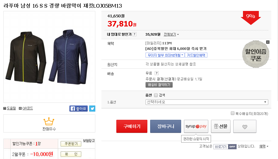 어쨌거나 16년 신상 바람막이인데 패커블 가능한 아주 얇은 형태 바람막이처럼 보입니다.