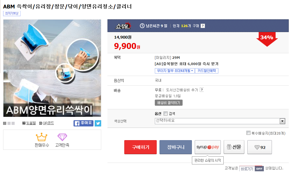 예전에 3만원 정도 산 거 있는 데, 그건 베란다에서도 안떨어지고 썼습니다. 대신, 두개가 붙으면 떼어내는 데 힘들었다는...사실 유리창 청소가 가능하긴 하지만, 쉽진 않더라구요. 중노동. ㅎㅎ