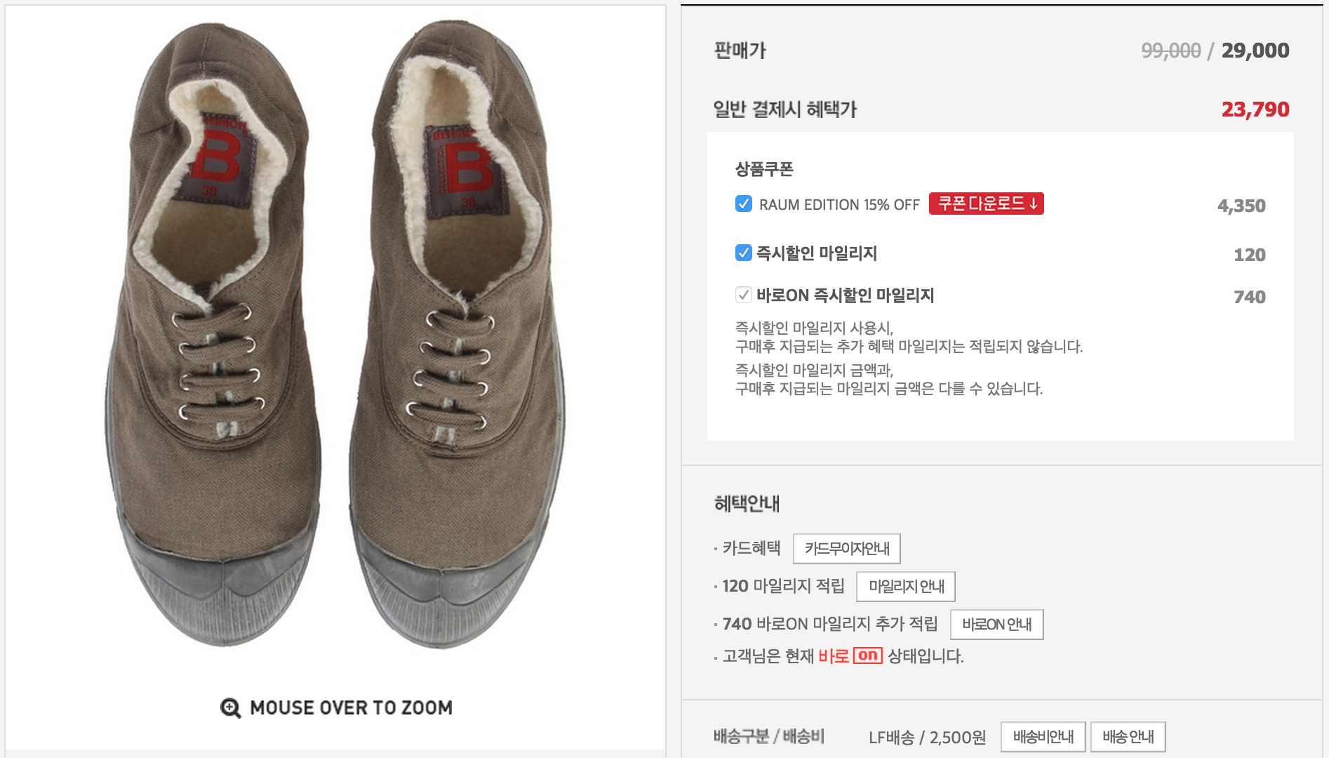 [LF몰] [BENSIMON]여성 라셋 베이지 기모 스니커즈 (23,790원/2,500원) > 국내핫딜