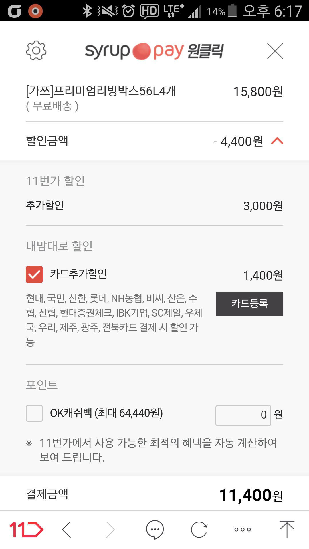 전 고객 매일 20%할인(최대 3천원) 및 내 맘대로 추가 할인 받으시면 11,400원에 구매 가능합니다.