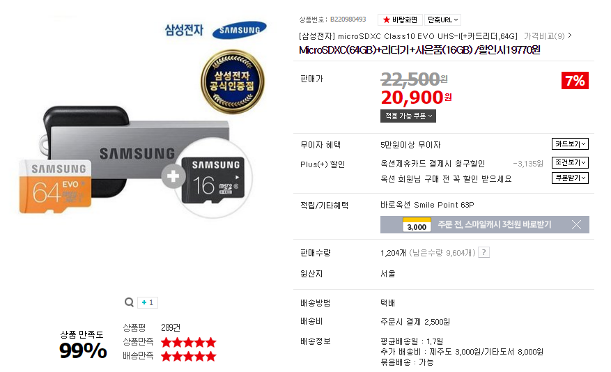 거기에 리더기+16기가메모리 끼워주니 괜찮은 가격입니다
