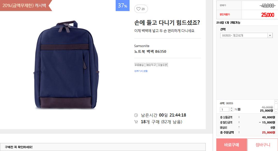 가격도 저렴한편이지만 20%캐시백도 받을 수 있어서