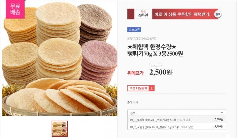 헉 특가상품이 있었군요.. 3번상품을 적어버렸습니다ㅠ 2번상품 3900같은 경우에 g당 11.1 원 꼴로 더 싸네요.. 죄송합니다ㅠㅠ |