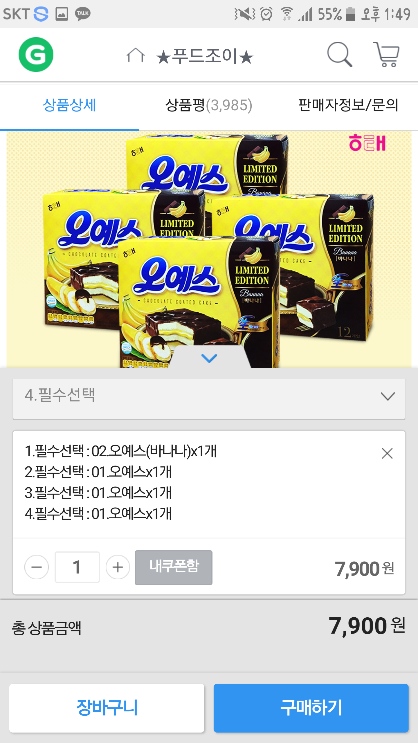 더군다나 오예스 바나나도 추가금액이 없이 선택가능