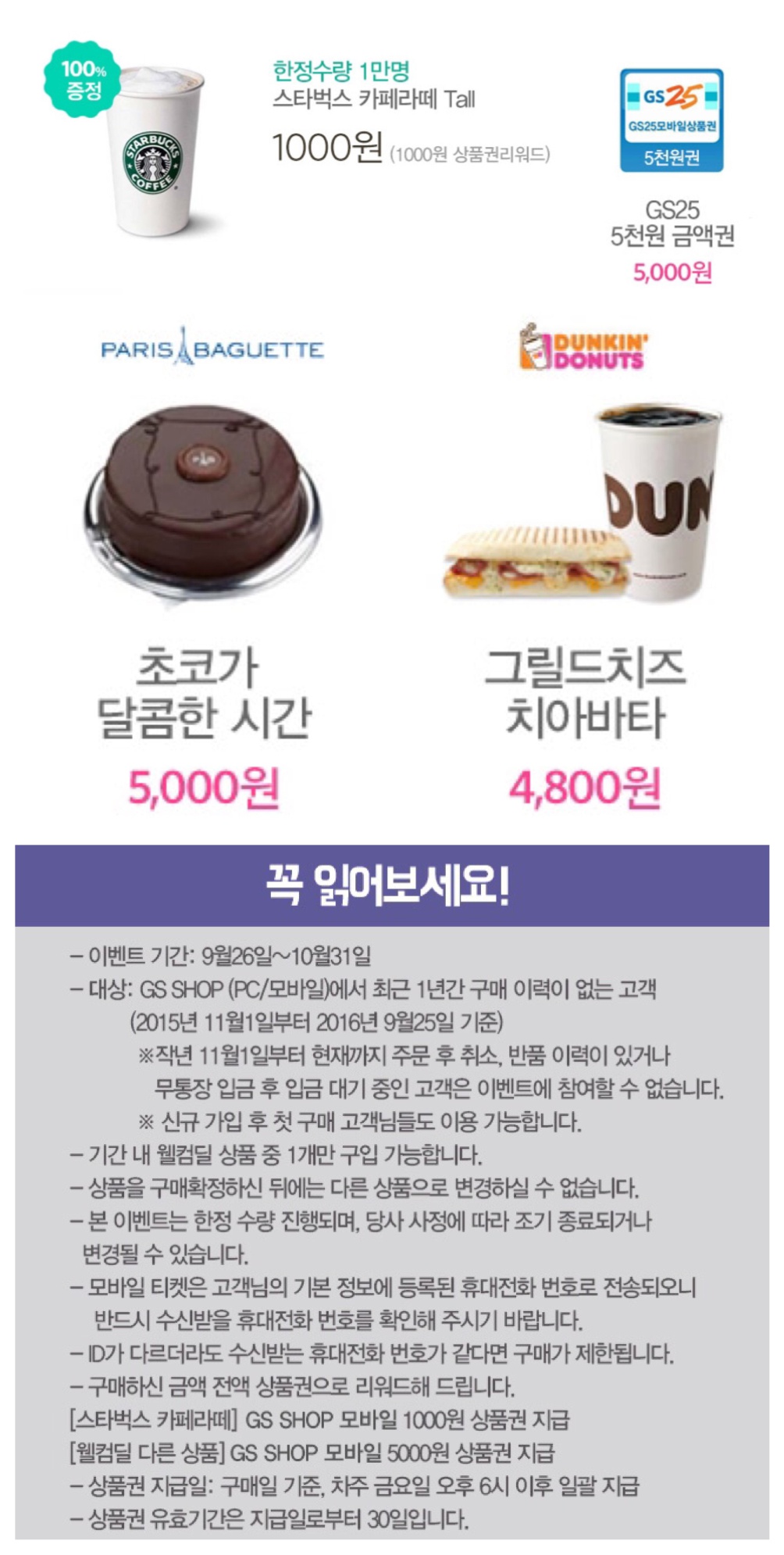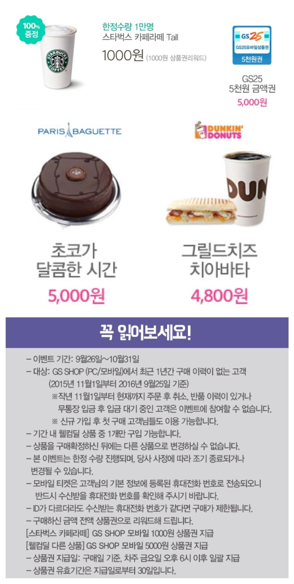 [GSshop] 스타벅스라떼 <작년10월이후미구매대상>(1,000/무료)