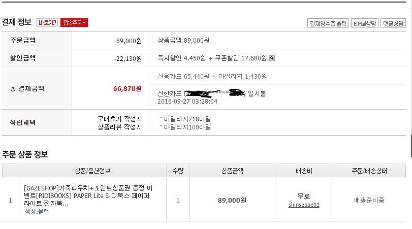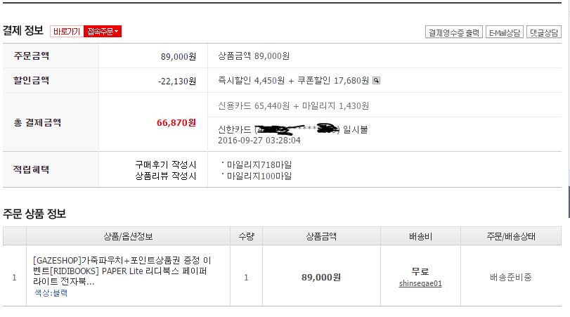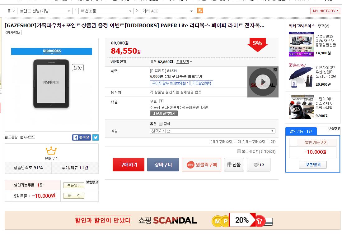 [11번가] [GAZESHOP]가죽파우치+포인트상품권 증정 이벤트[RIDIBOOKS] PAPER Lite 리디북스 페이퍼 라이트 전자북... (84,550/무료) > 국내핫딜
