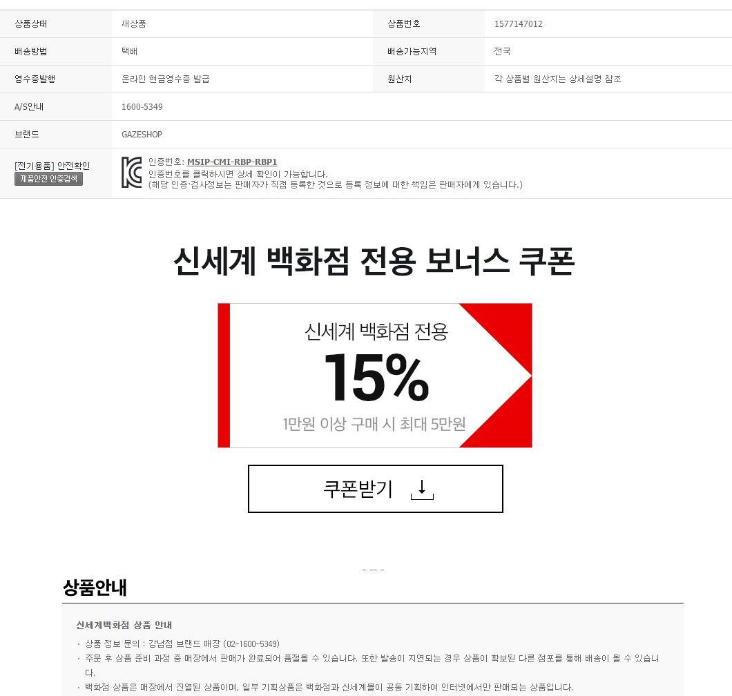 상품페이지에서 신세계 15% 쿠폰 받으시고 VIP 5천 장바구니 쿠폰 적용후 기본 마일리지 적용하시면 이 가격 나옵니다.
