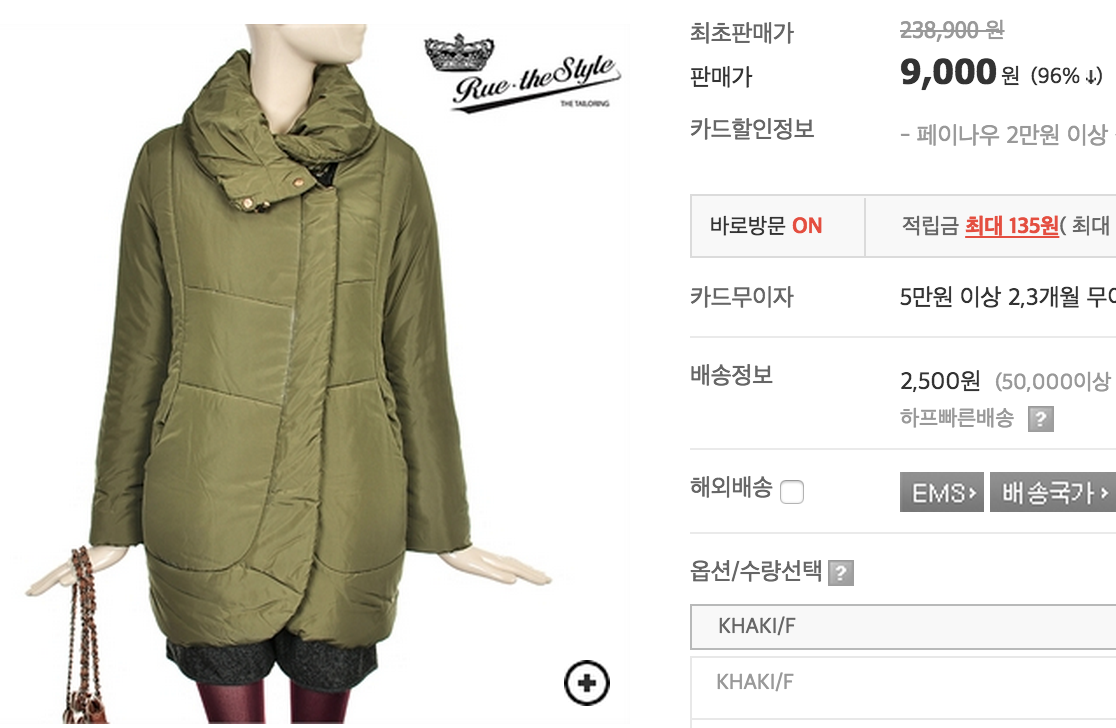 [하프클럽] [Rue the Style] 와이드 카라 패딩 롱 점퍼 (9,000원/2,500원) > 국내핫딜