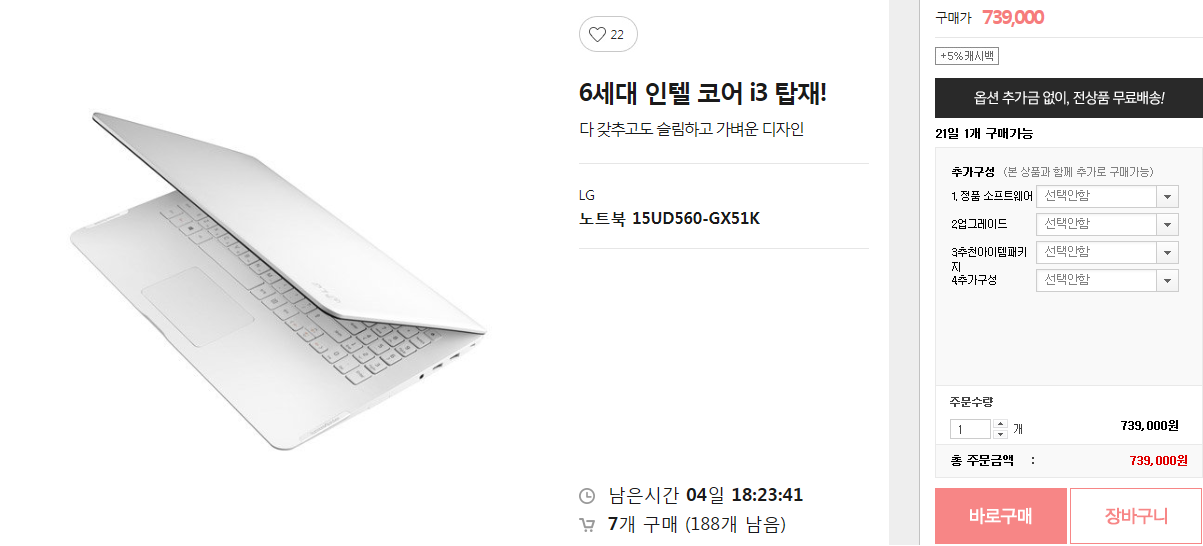 [G9] LG노트북 15UD560-GX51K (739,000/무료) > 국내핫딜