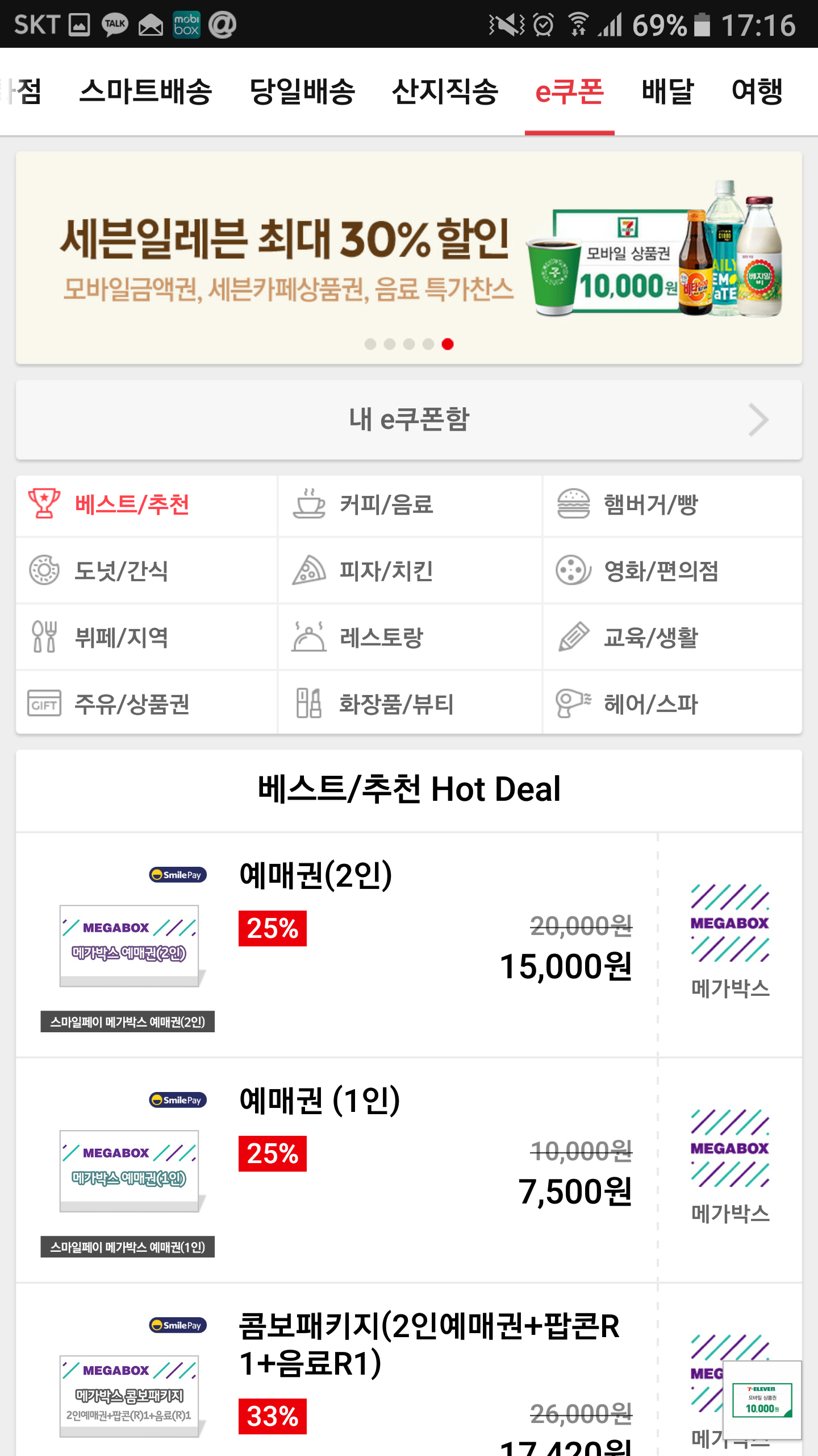 e쿠폰 메뉴에서 맨 우측 배너 누르고 들어가서 구매하세요 :)