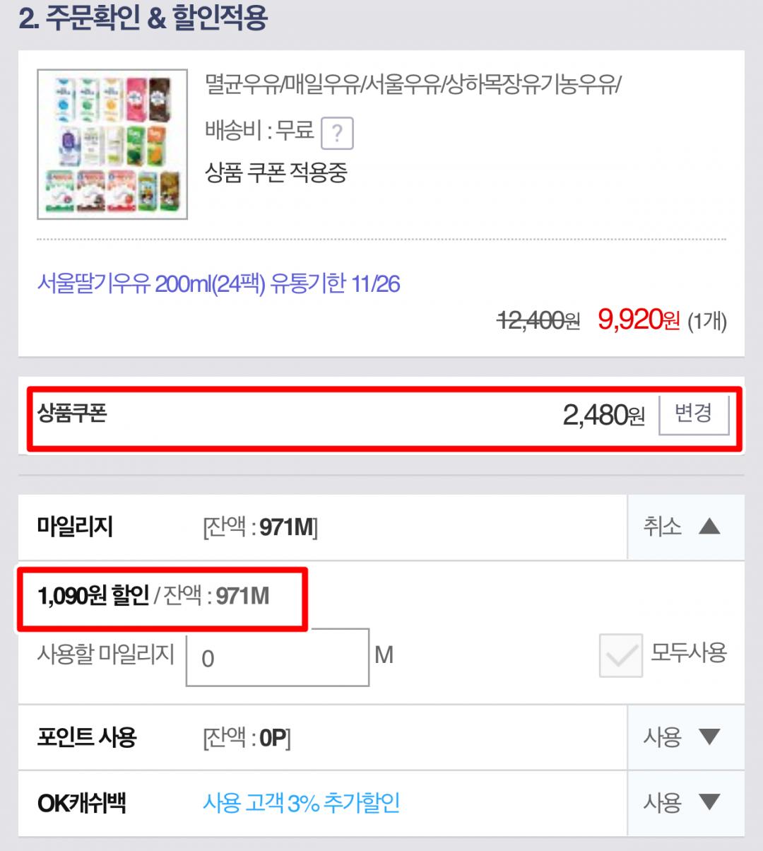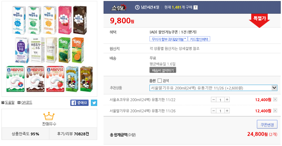 항상 매일우유가 싼줄알고 주문하는데 적용이 안되서 보니