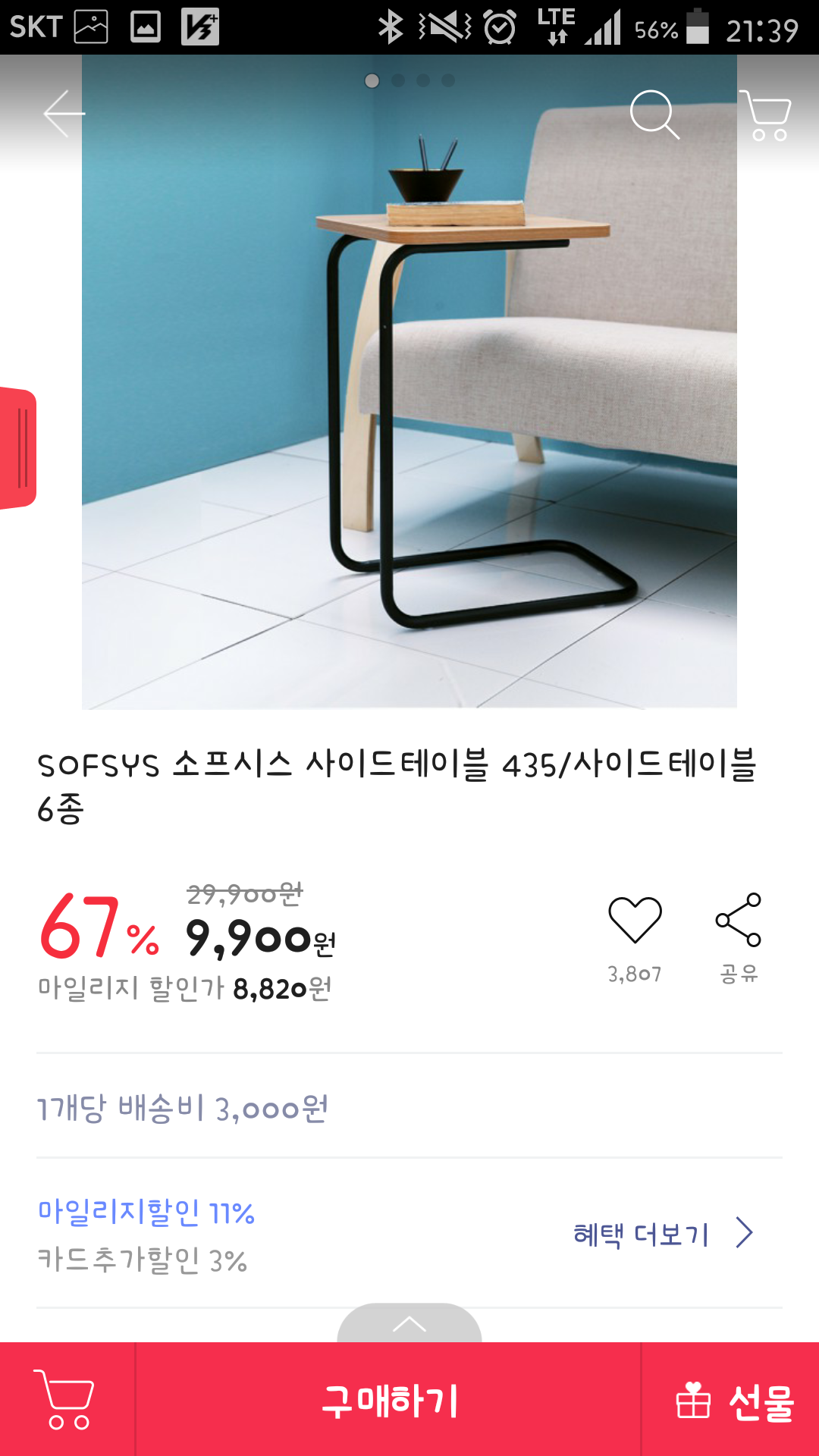 [11번가] 소프시스 사이드테이블(9,900/3,000)