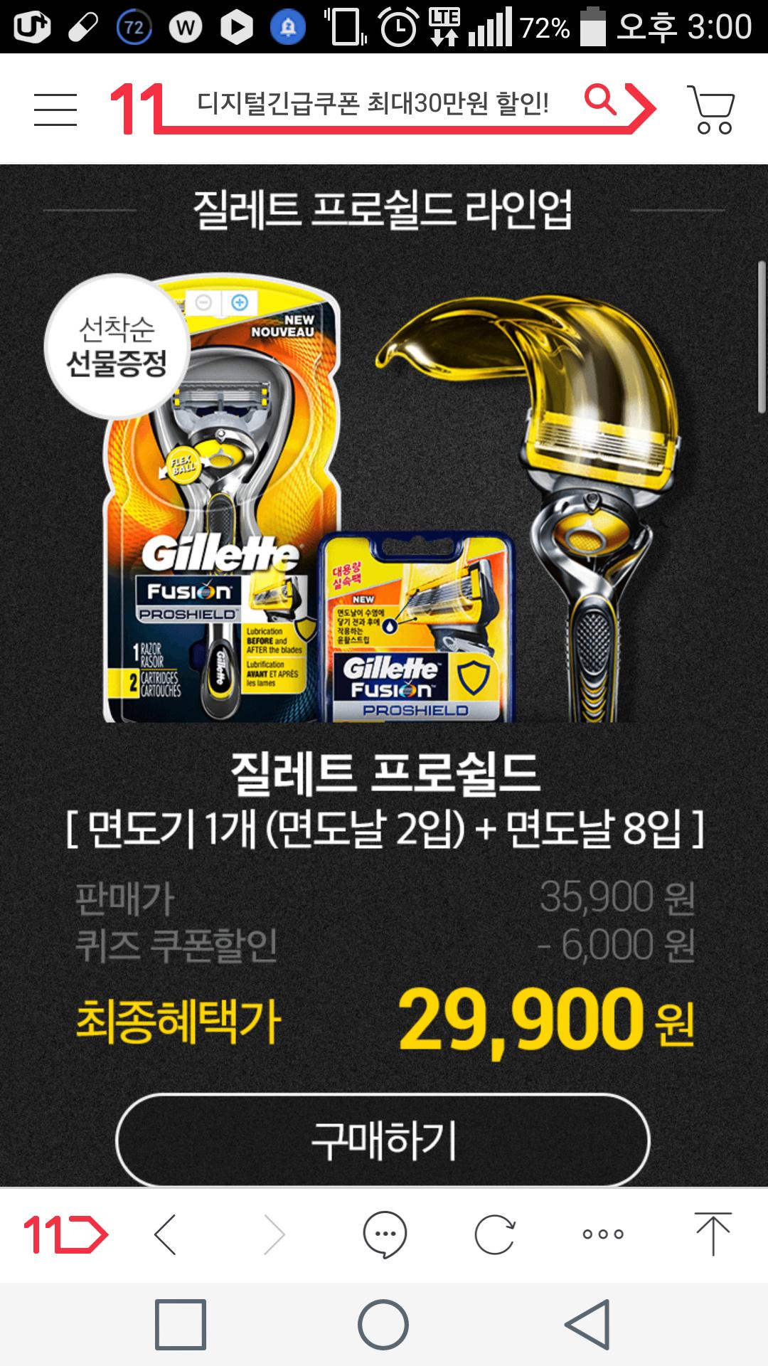 메인페이지에 질레트 광고 누르면 쿠폰 다운 가능 합니다
