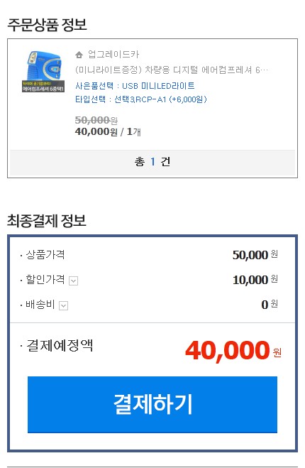 기본 44,000 원에 옵션 RCP-A1 선택시 50,000원 쿠폰 30% 사용시 4만원입니다