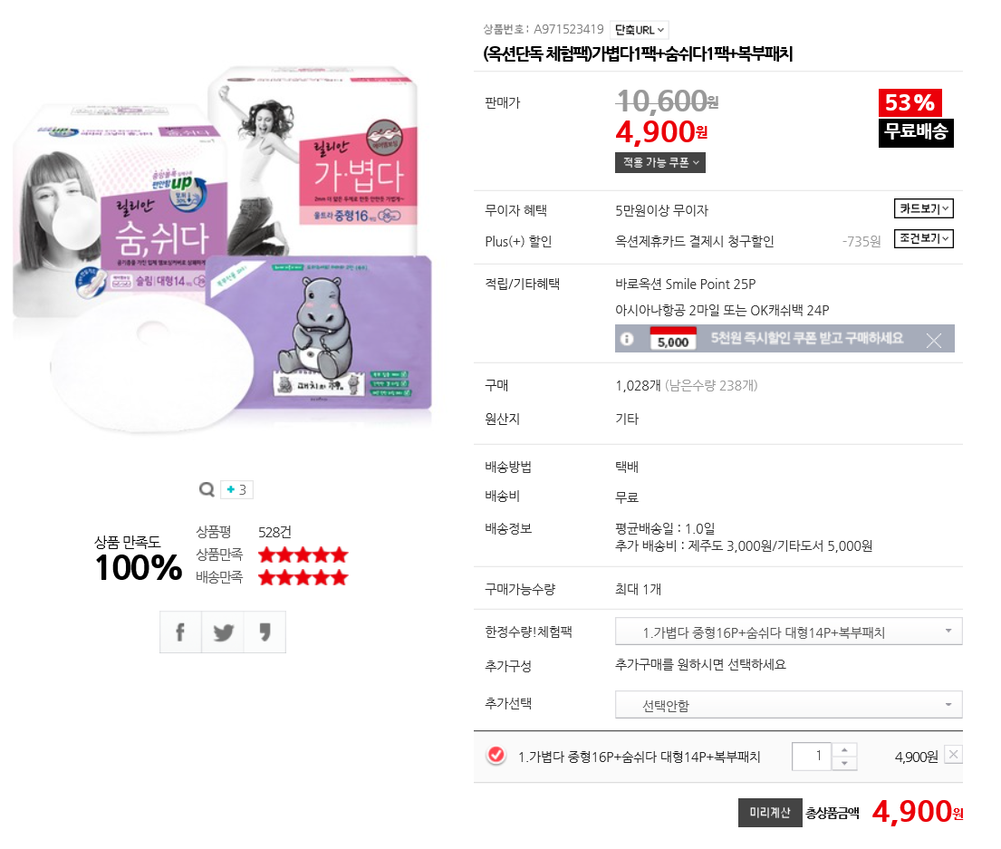 이 생리대가 저가형 중에 젤 괜찮은 거 같아요 |