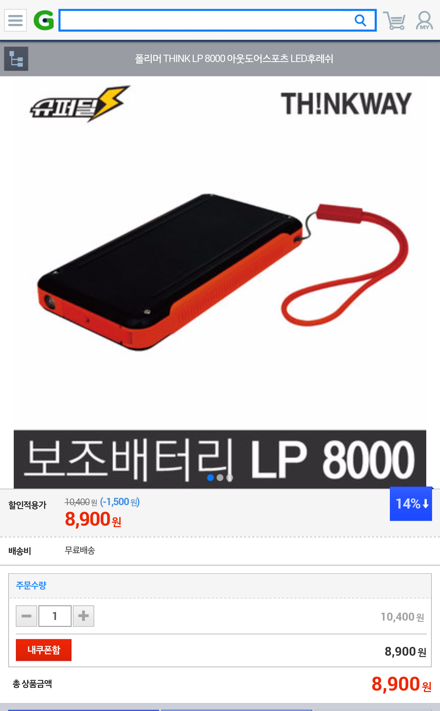 [G마켓] THINK LP 8000 보조배터리 (8,900/무료) > 국내핫딜