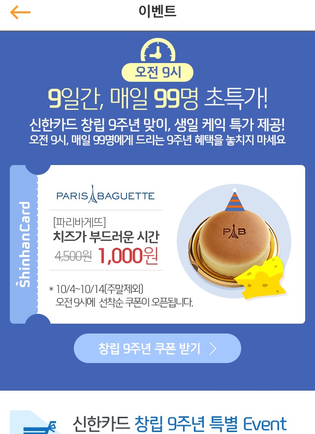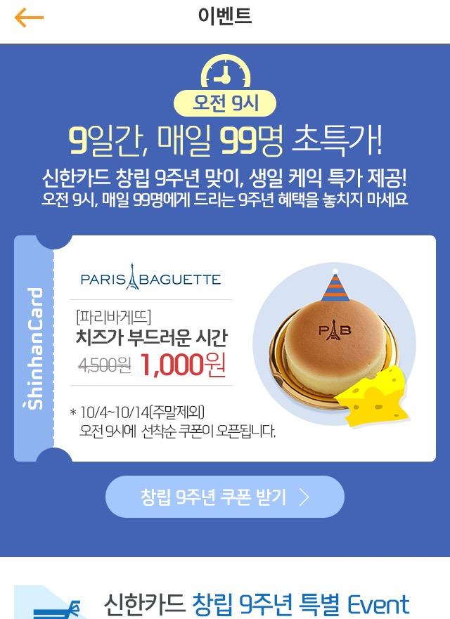 [신한올댓] 치즈...시간 (1000원/무료) 10/4~10/14 오전9시 선착순 99명