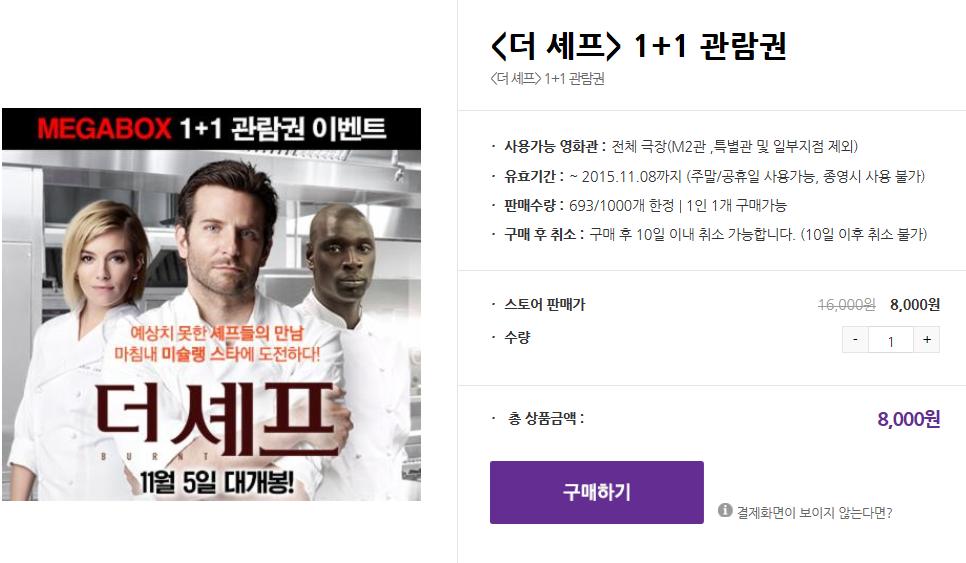 [메가박스] 더 셰프 1+1 (8,000/0)