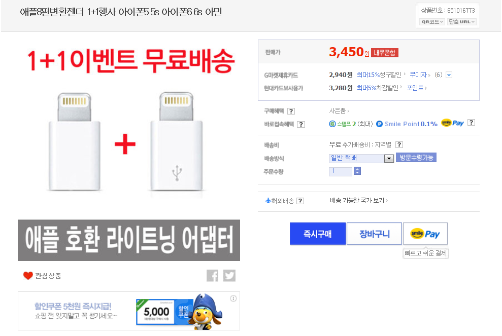항상은 아니지만 요긴하게 쓰실 수 있는 8핀젠더입니다