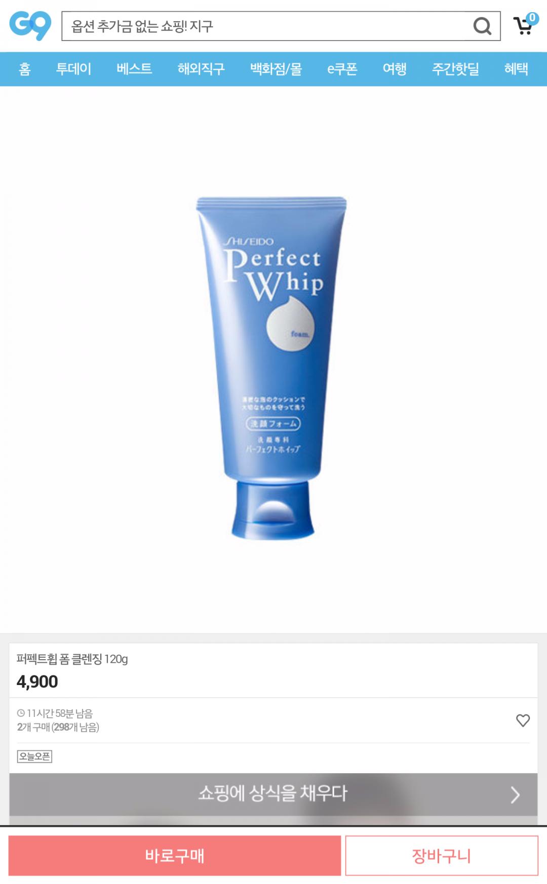 (종료) [G9] 시세이도 퍼펙트휩 120g(4,900/무료) > 국내핫딜
