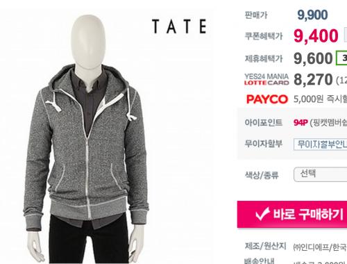 [아이스타일] [테이트] 남성 후드 집업 가디건 (9,400원/3,000원) > 국내핫딜