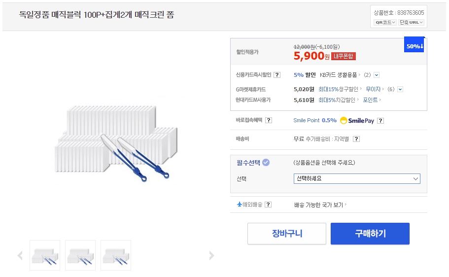 [G마켓] 독일정품 매직블럭 100P + 집게 2개 (5,900/무료배송) > 국내핫딜