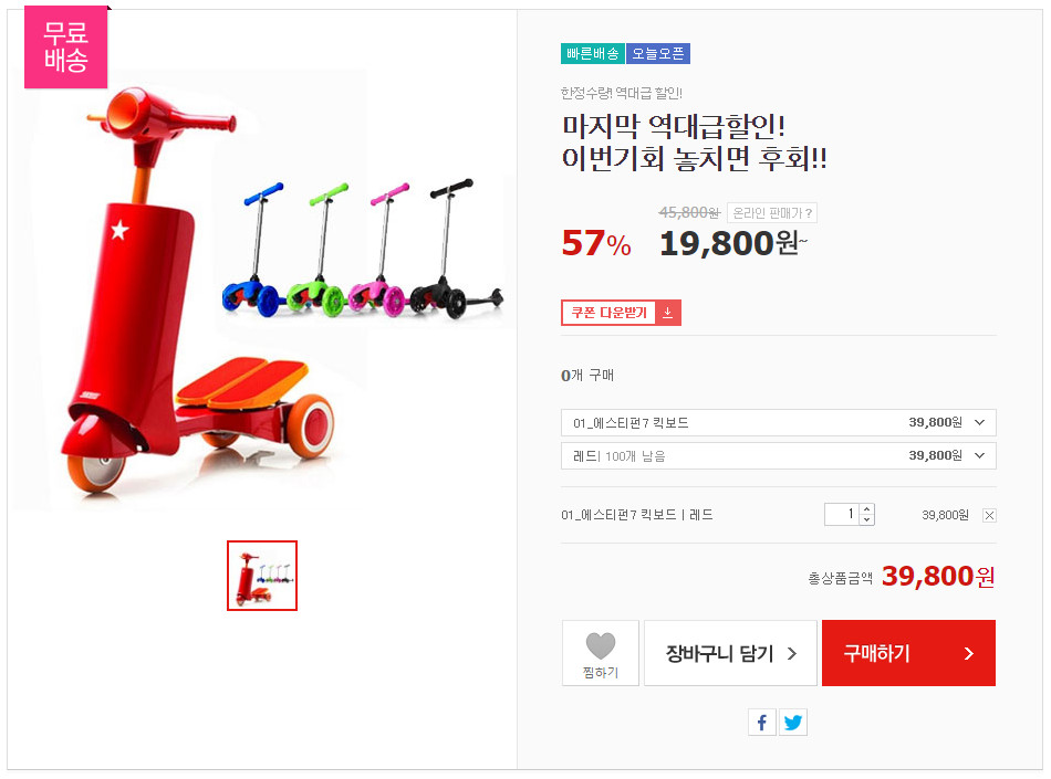 특이한 아동용 킥보드 행사중이라 공유드립니다