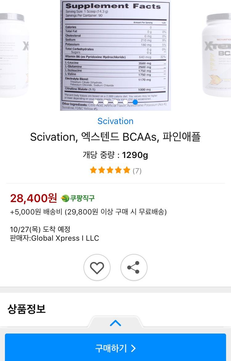 [쿠팡] Scivation 엑스텐드 BCAAs 파인애플 1.29 kg (28,400원 / 5,000원) > 국내핫딜