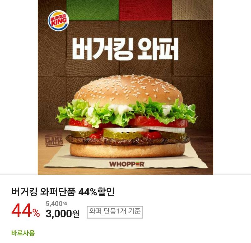 [쿠팡] 버거킹 와퍼단품 (3,000/무료) > 국내핫딜