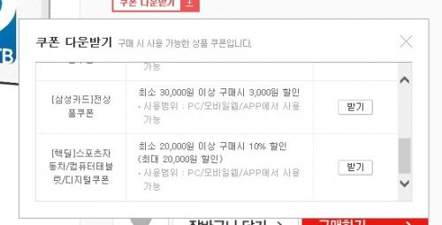 (핵딜쿠폰 다운로드는 "[핵딜]스포츠/자동차/컴퓨터태블릿/디지털쿠폰"으로 다운 하셔야 카드 중복할인가능합니다.)