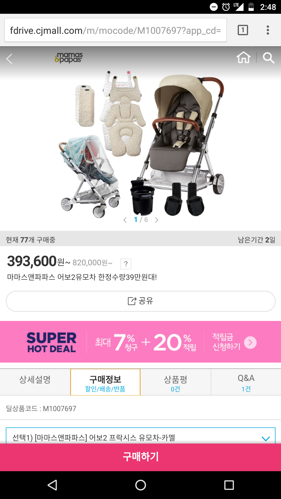 어보2 유모차 괜찮읔 가격에 판매하네요.