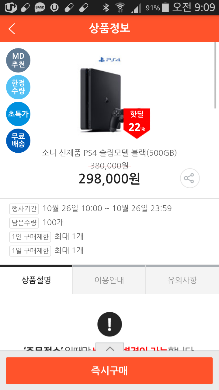 수량이 그래도 100개나 되네요..1분이내 품절 예상합니다.
