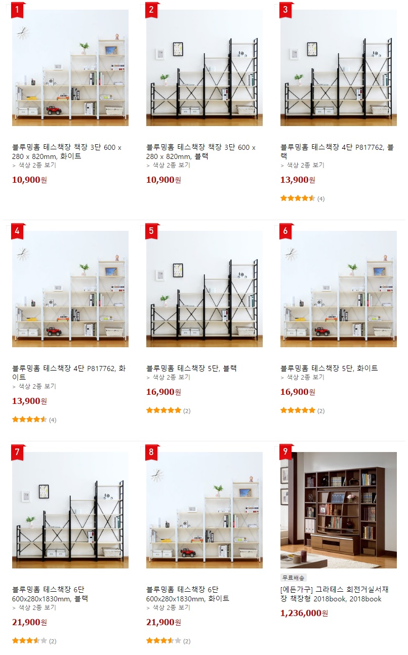 [쿠팡] 블루밍홈 테스책장 3단 ~ 6단 (10,900 ~ 21,900 / 3000)