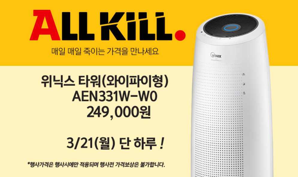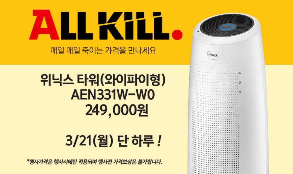 [올킬] 위닉스 AEN331W-W0 WIFI 공기청정기(234,000(쿠폰적용가)/무배) > 국내핫딜