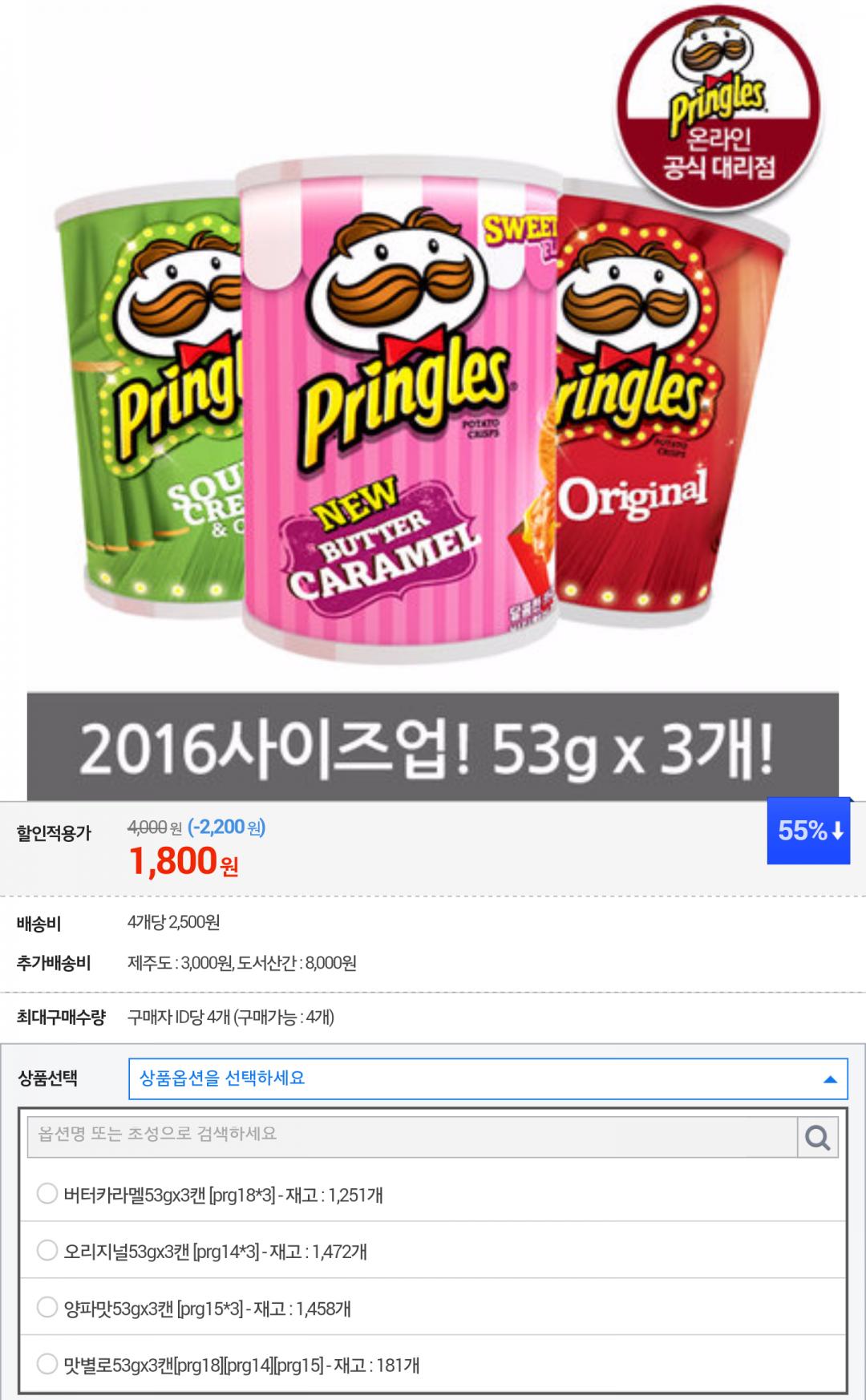 [G마켓] 프링글스 53g x 3개입 (1,800/2,500)