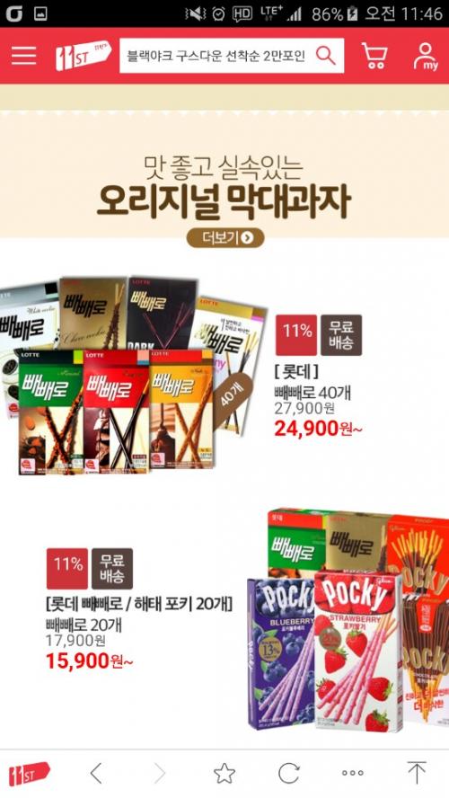11번가에서 그냥 빼빼로 치면 되나요? | ||